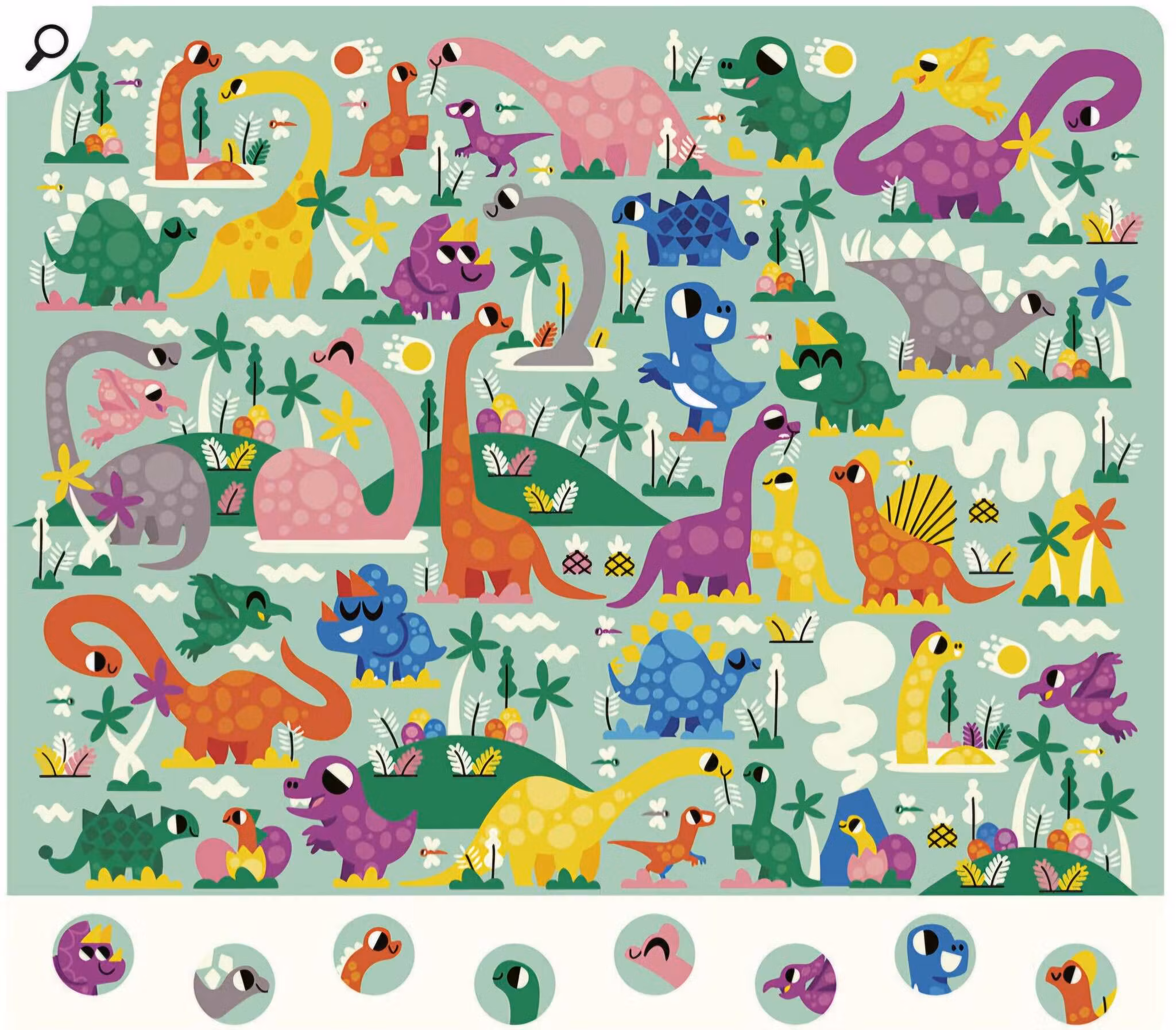 En förpackning fylld med 20 olika pysselblad med dinosaurietema. Här finns labyrinter, prick-till-prick, finn-fem-fel och hitta saker på bilden.