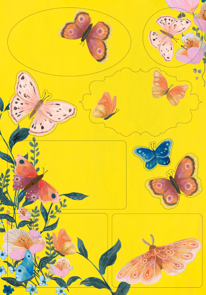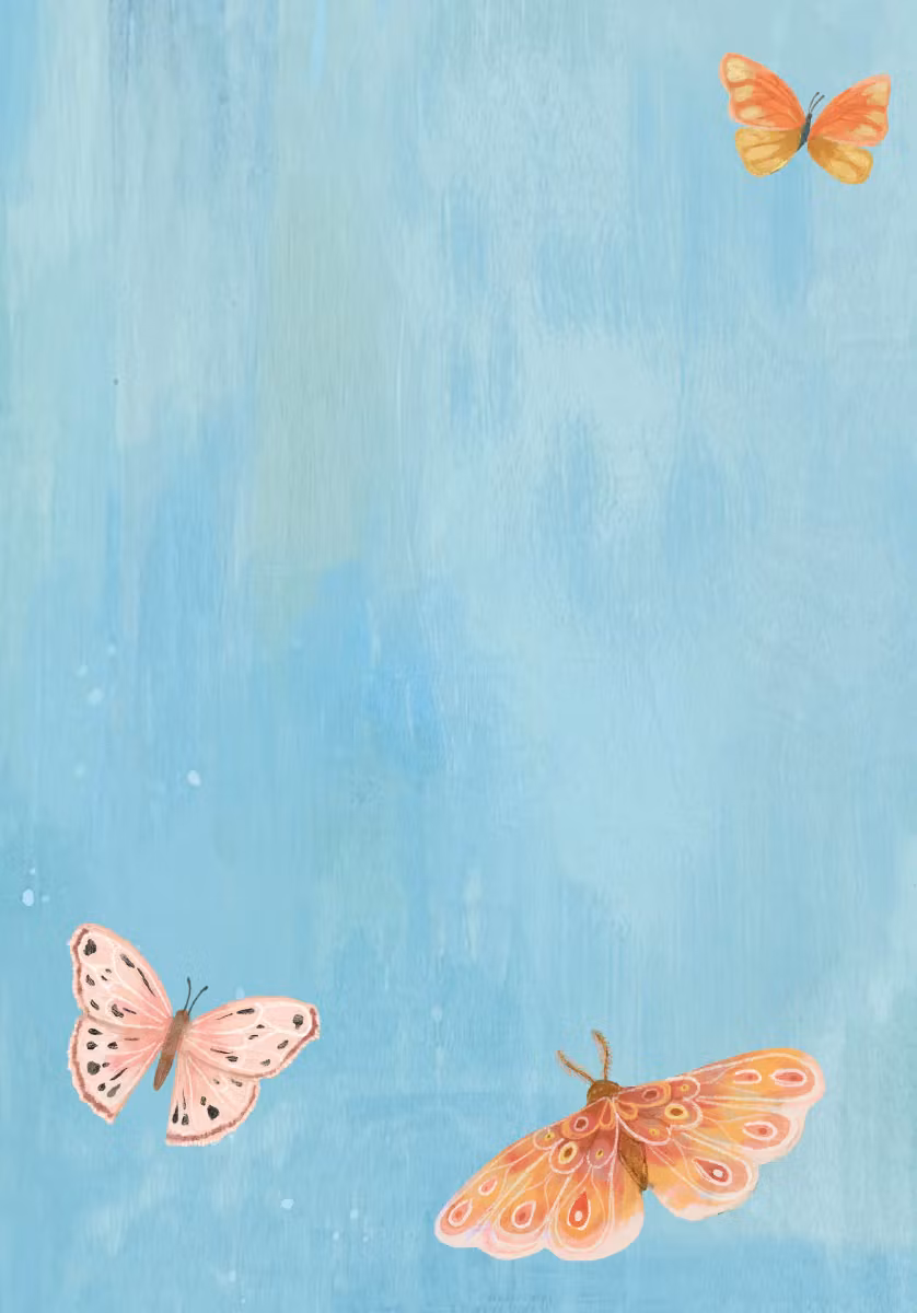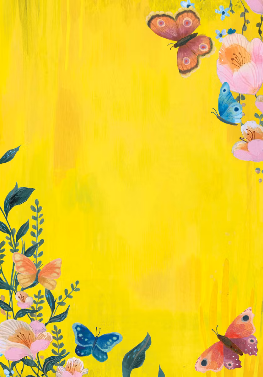 Så fint skrivpapper med kuvert. Motiv med färgglada fjärilar och blommor.