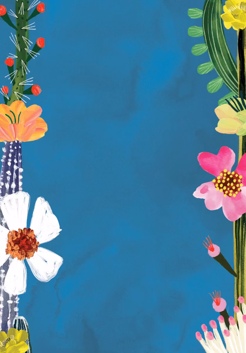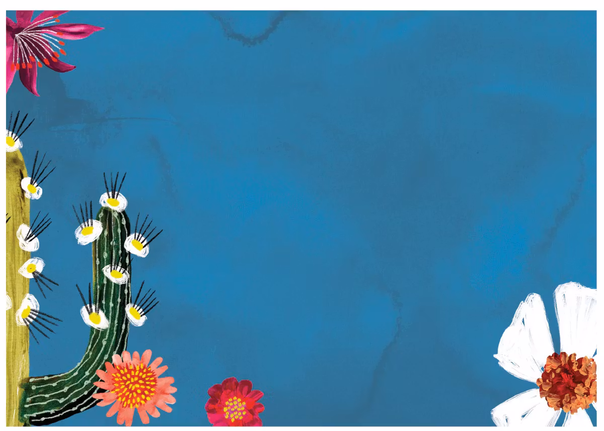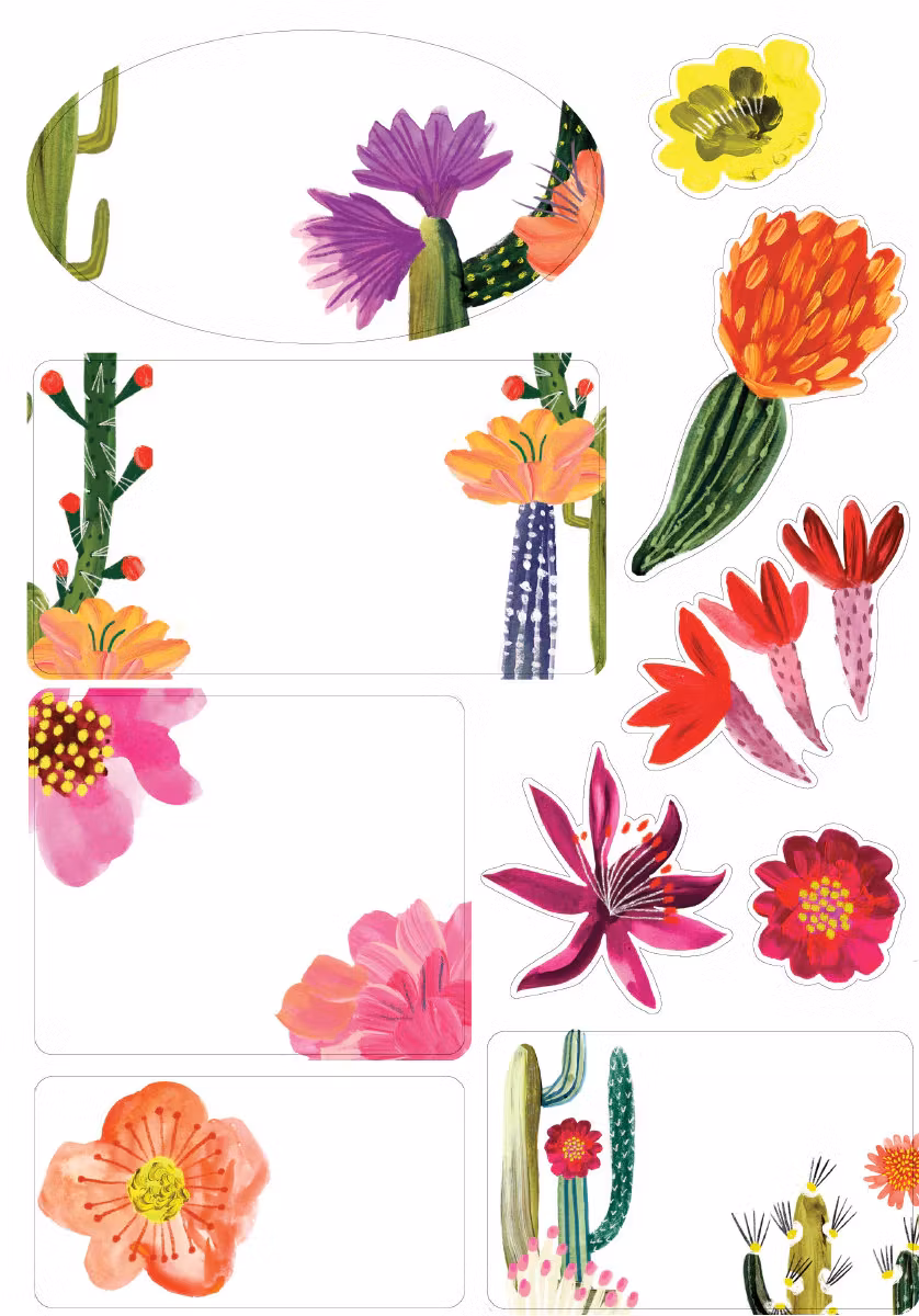 Så fint skrivpapper med kuvert. Motiv med färgglada kaktusar och kaktusblommor.