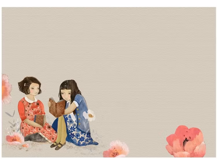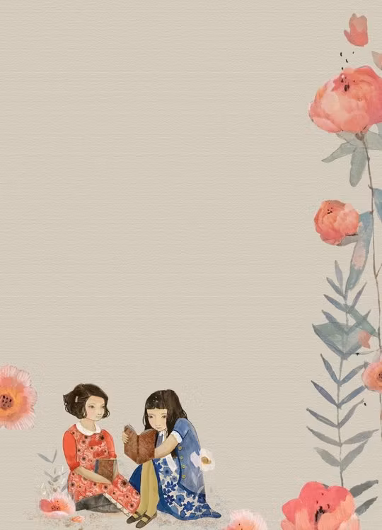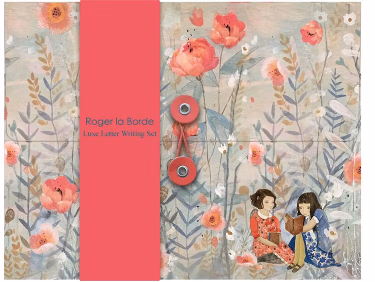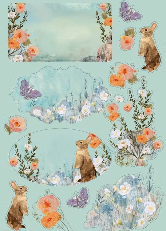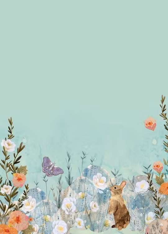 Så fint skrivpapper med kuvert. Motiv med två vänner som berättar hemligheter för varandra och den lilla haren som skuttar på sommarängen bland alla blommor.