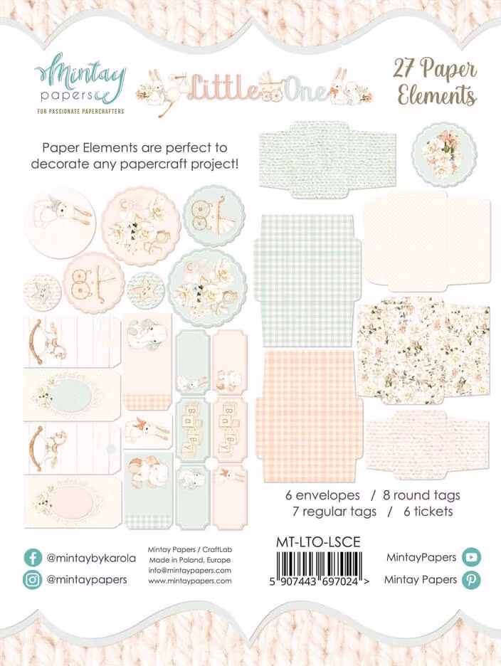 Sammanlagt innehåller förpackningen 27 olika papperselement.