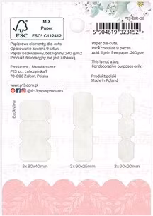 - 3 stycken pappersdekorationer som är 9 x 2 cm