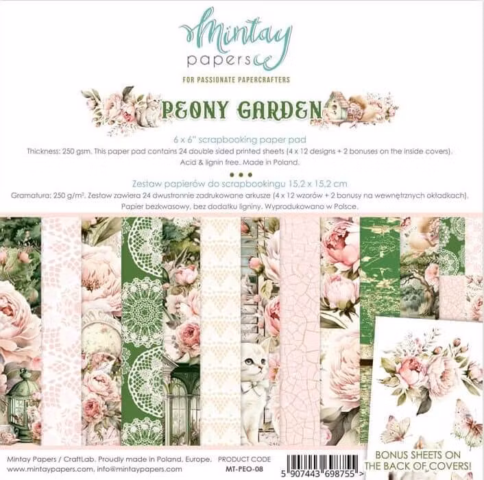 Förpackningen innehåller 24 dubbelsidiga ark med 250 gramspapper. Olika motiv på de olika sidorna.
