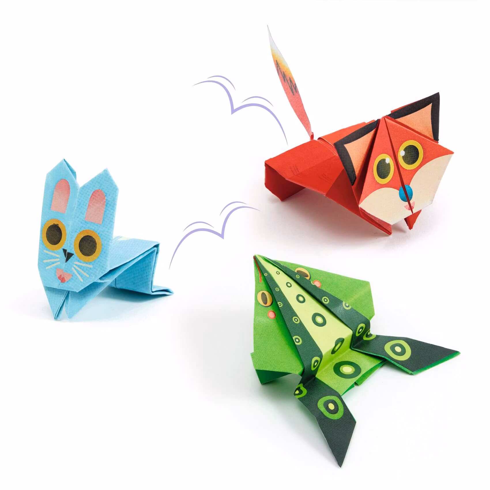 Ett underhållande Origami-kit för dem som klarar av de enklare modellerna, och som låter er skapa 11 olika hoppande, voltande eller rullande djur.