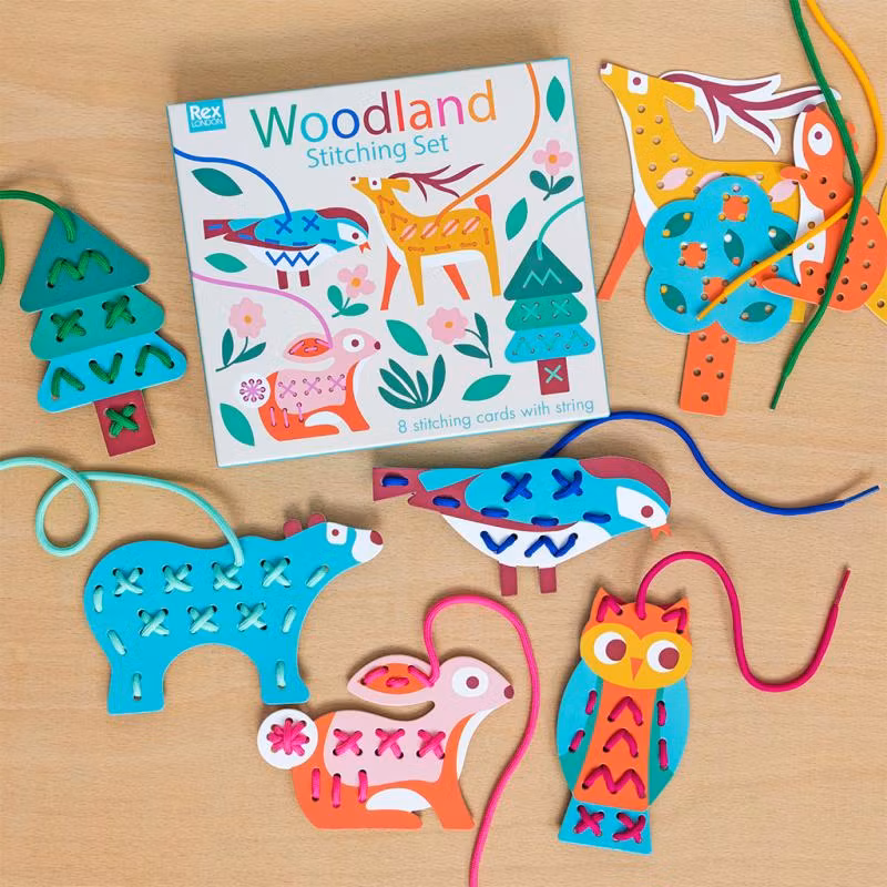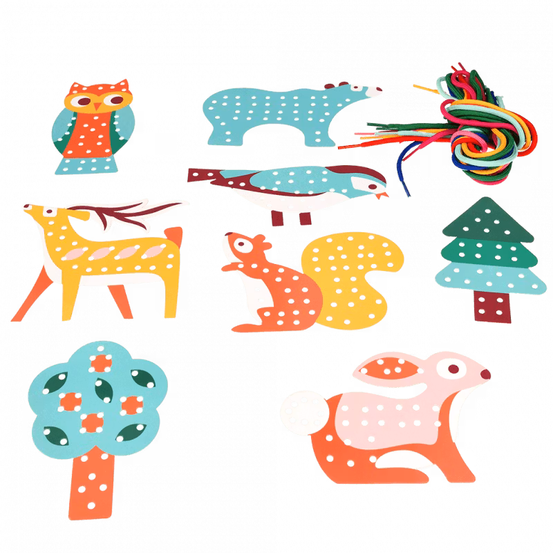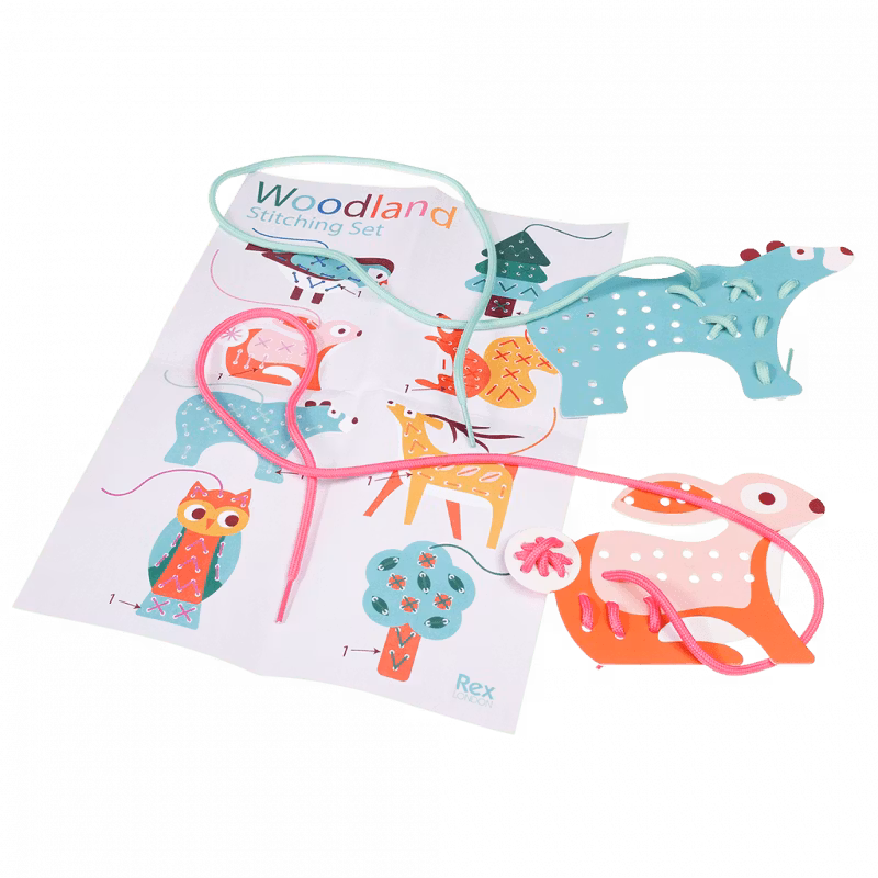 Här kan du börja känna glädjen med att sy genom detta enkla set. Här syr du på söta skogsdjur och träd.