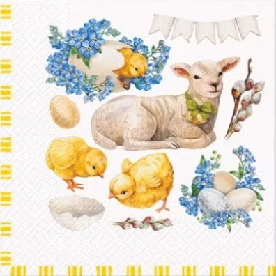 Servetter - Lamm & Kyckling 49 kr Härliga servetter att duka med till middagen. 20 stycken servetter i varje paket. Storlek på pappersservetterna: 33 x 33 cm (middag eller lunch). Lägg i korgen Dela Härliga servetter att duka med till middagen. 20 stycken servetter i varje paket.Storlek på pappersservetterna: 33 x 33 cm (middags- eller lunchservetter)
