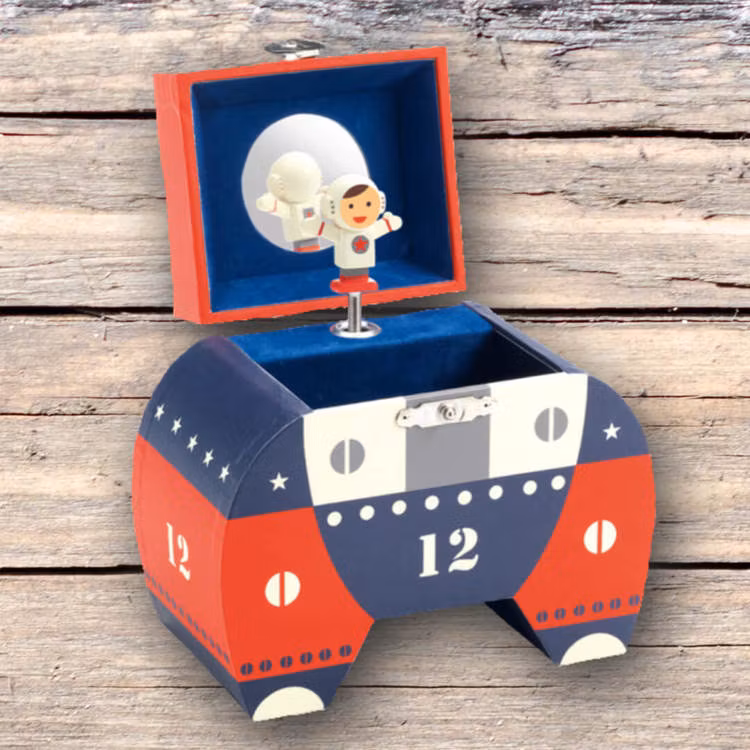 Härlig inredningsdetalj i form av en speldosa som går att öppna. När du öppnar lådan snurrar en astronaut runt till musiken. Här kan du förvara dina mest värdefulla skatter. Astronauten skyddar dem åt dig hela natten.