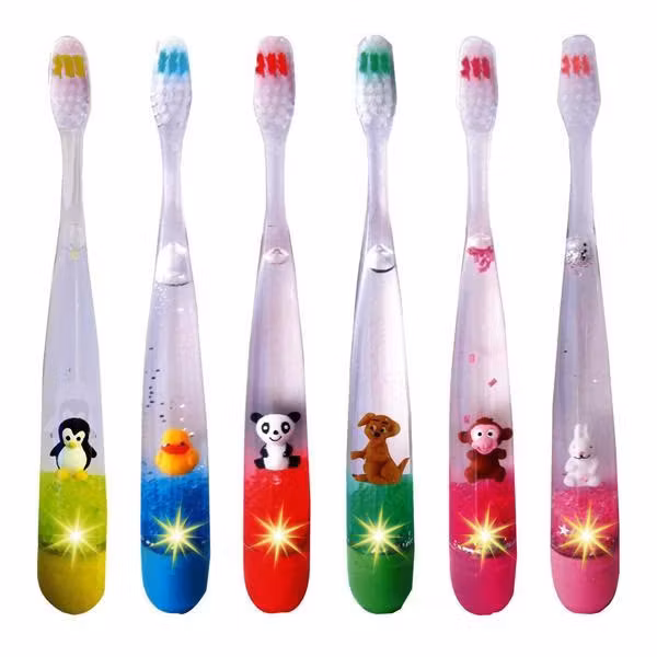 Här finns härliga tandborstar som hjälper dig att ha koll på tiden. De här fina barntandborstarna blinkar så länge som du ska borsta tänderna.