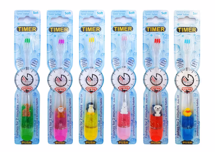 De här fina barntandborstarna blinkar så länge som du ska borsta tänderna. Den den slocknar är din tandborstning klar.