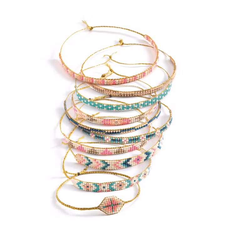 En rolig och lite enklare form av pärlvävning med riktigt små pärlor. Skapa snygga mönster och olika breda armband efter eget huvud eller efter instruktionerna.
