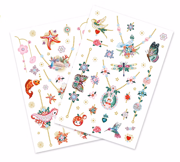 Förpackningen innehåller 2 ark med fina tatueringar.