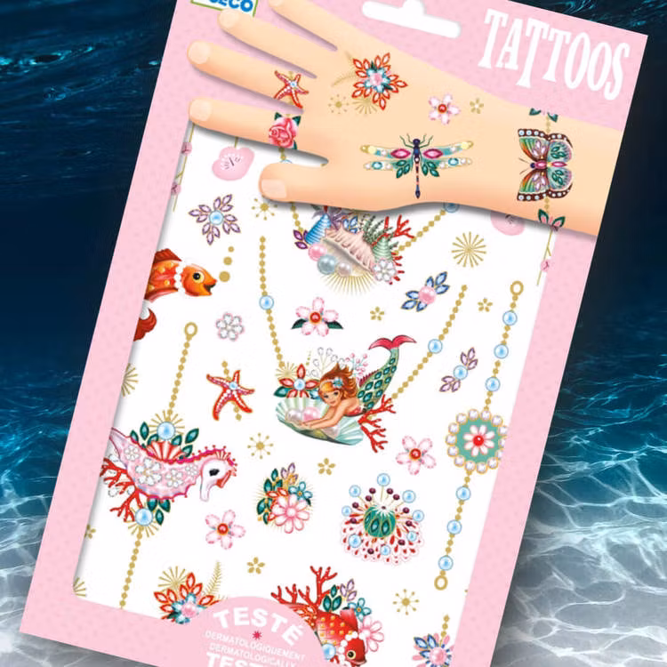 Temat här är Fionas juveler. Under vattenytan finns fler skatter än du kan tänka dig. De här fina tatueringarna har metallic effekter.