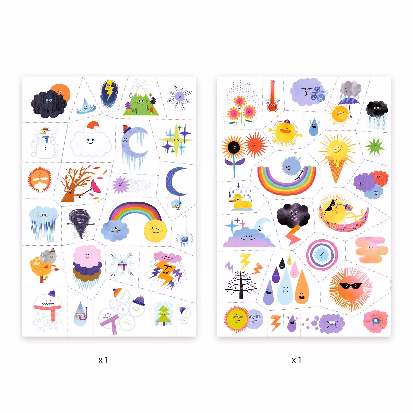 Ett set med över 50 st häftiga tatueringar med motiv som föreställer snygga, roliga och färgglada bilder med anknytning till väder - väder emojis.